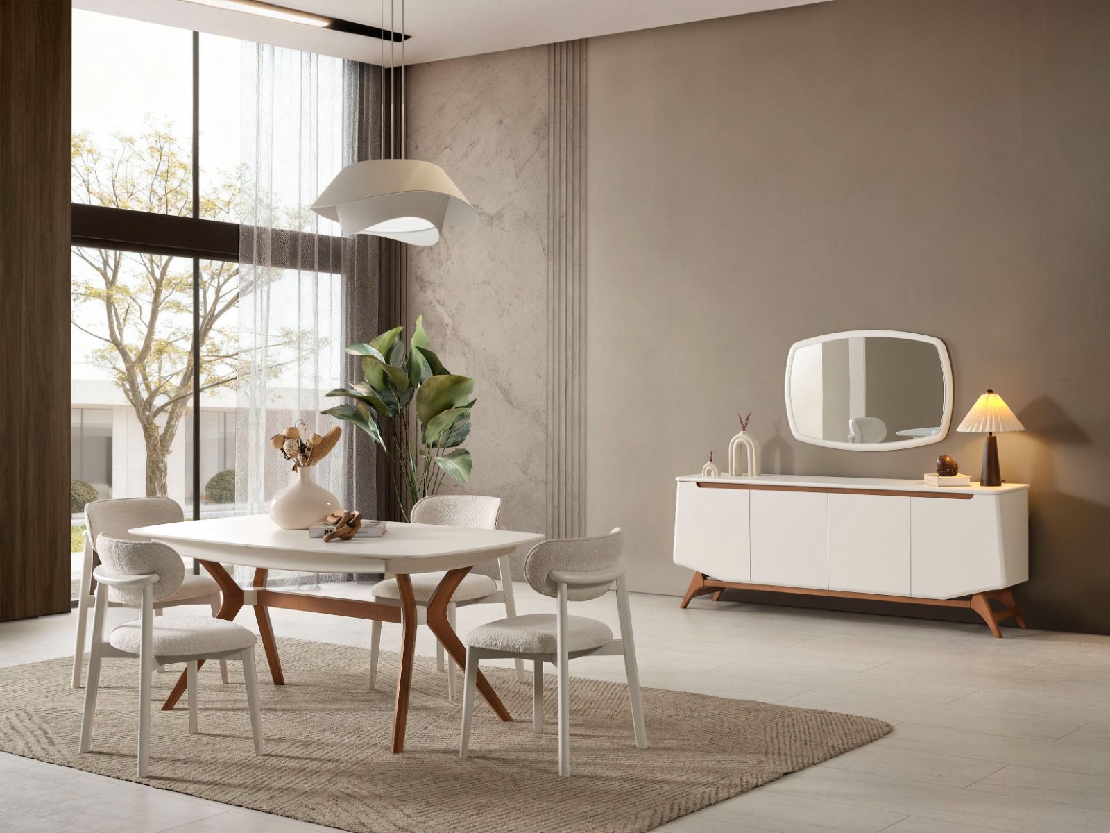 - 1 Adet Konsol+Ayna,1 Adet Masa,6 Adet Sandalye den Oluşmaktadır