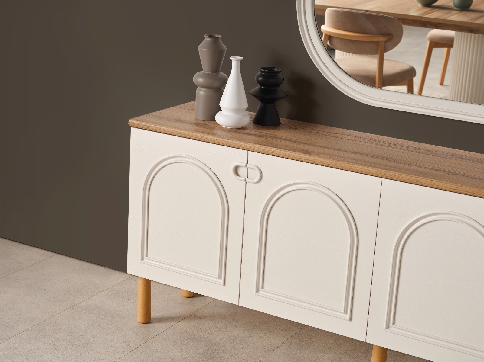 - 1 Adet Konsol+Ayna,1 Adet Masa,6 Adet Sandalye den Oluşmaktadır