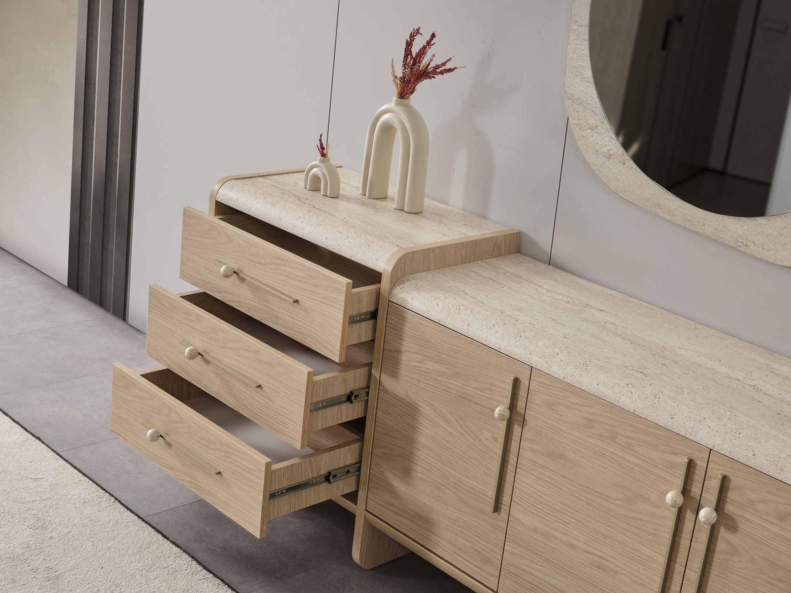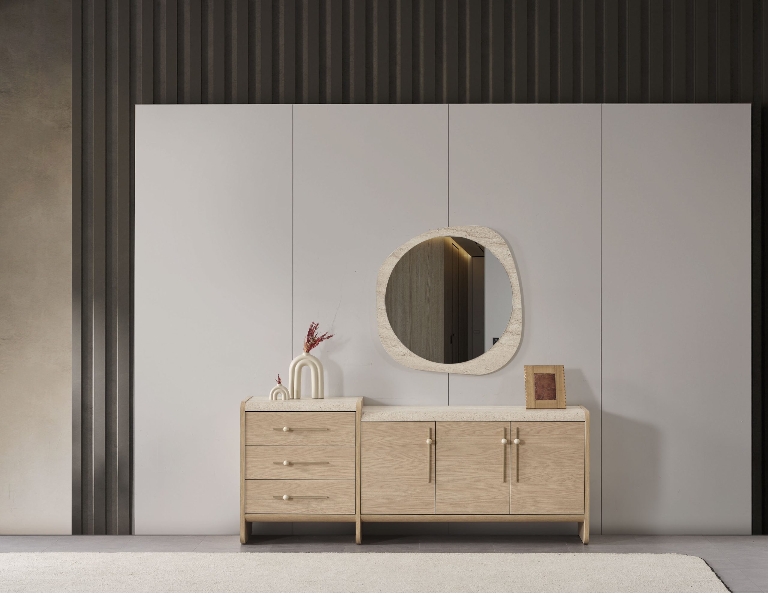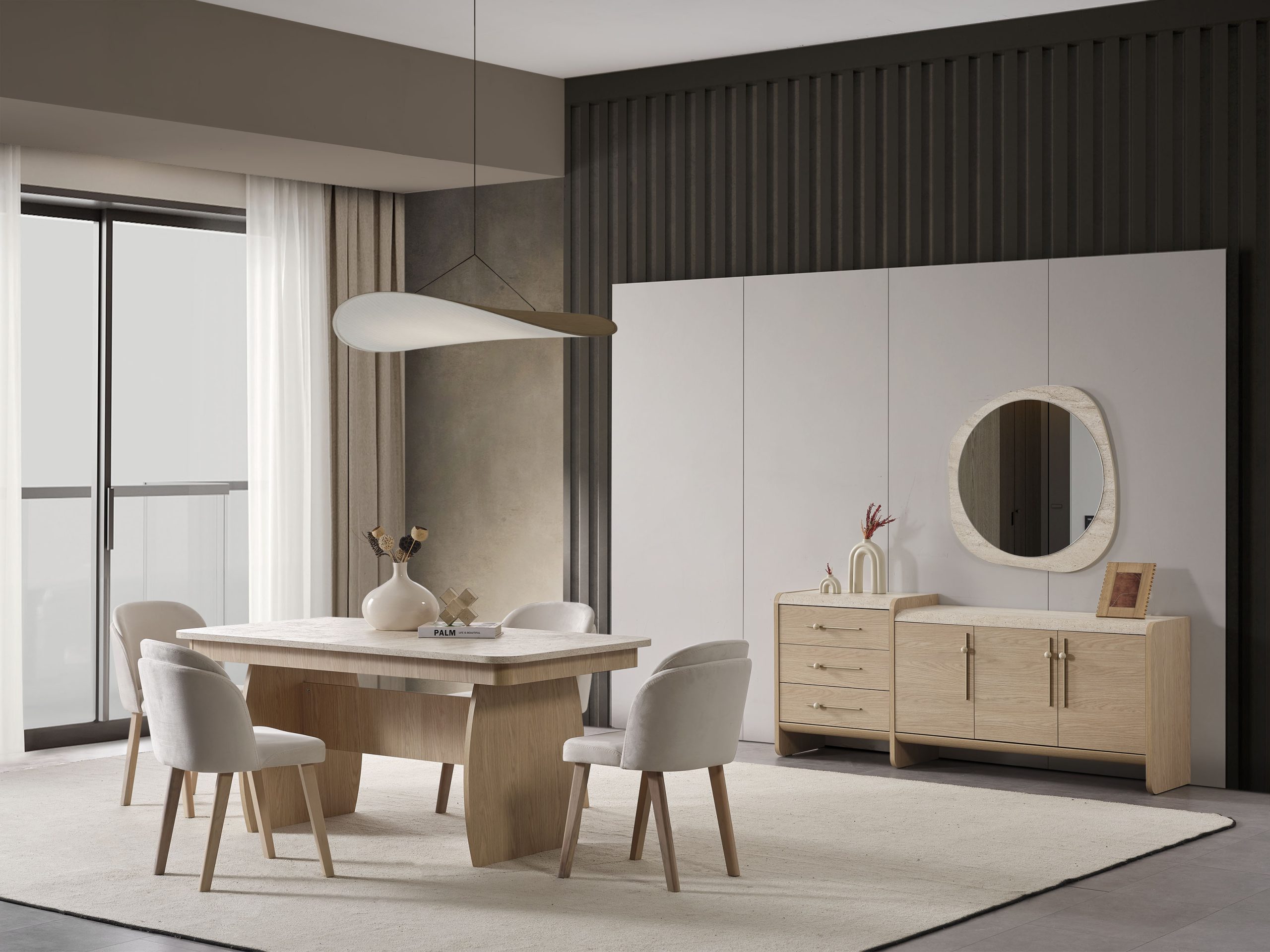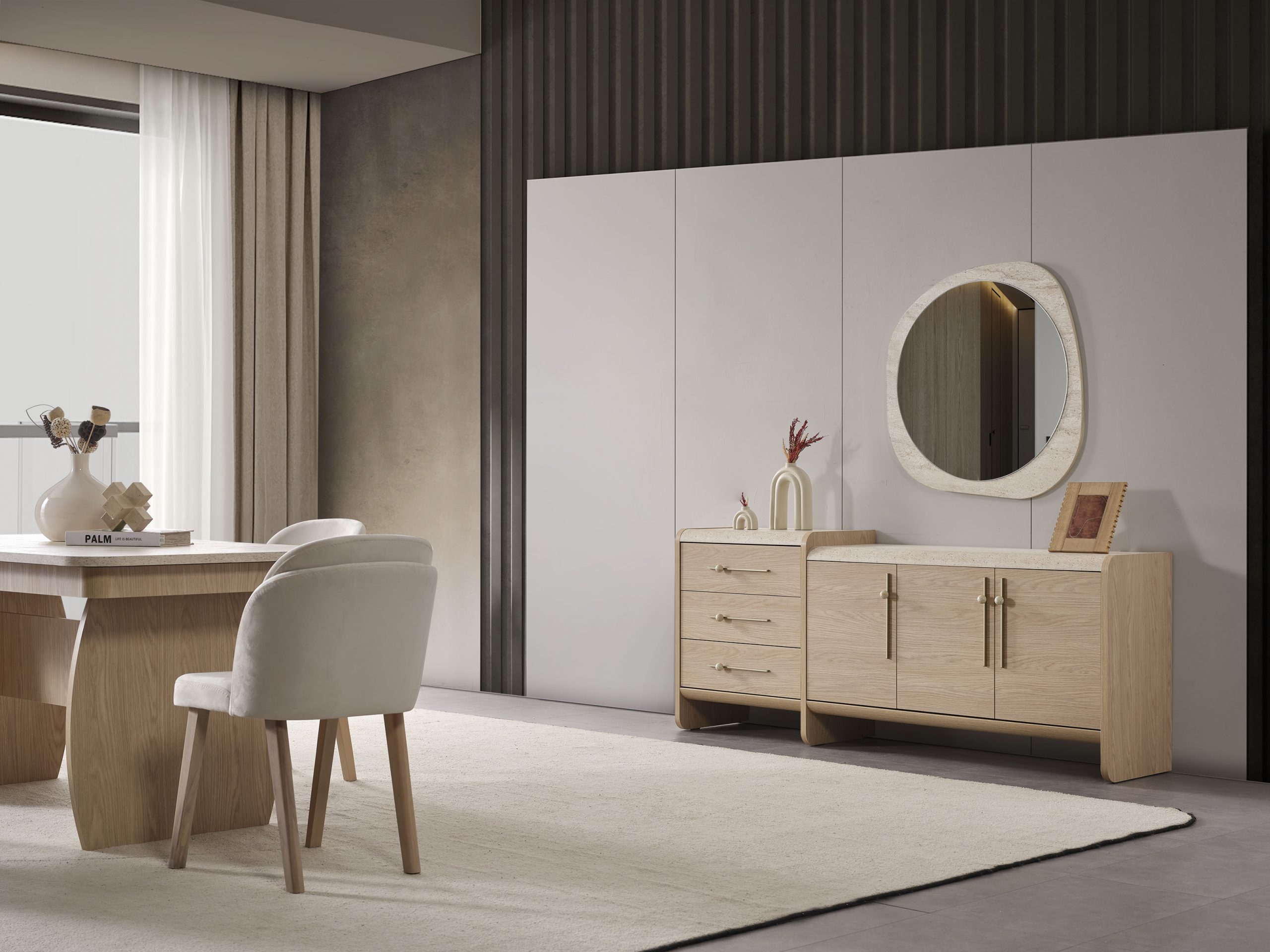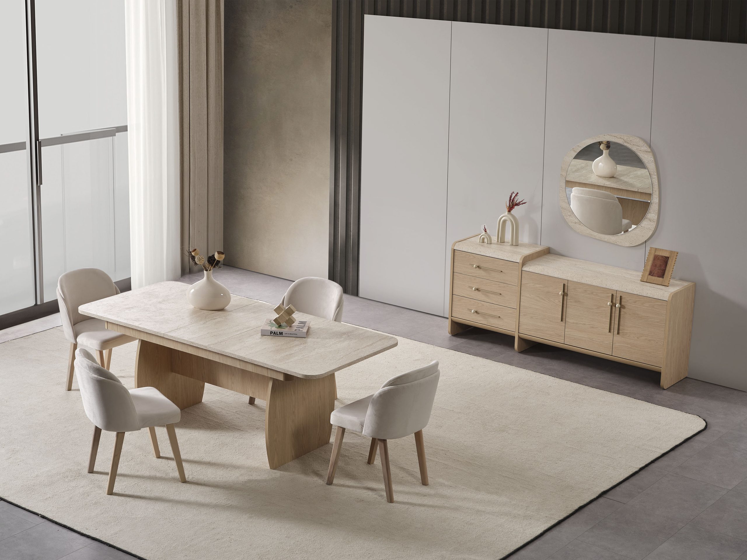 - 1 Adet Konsol+Ayna,1 Adet Masa,6 Adet Sandalye den Oluşmaktadır