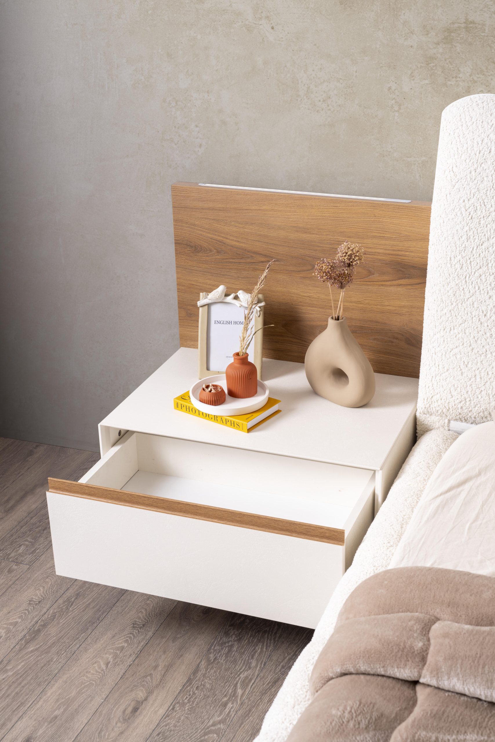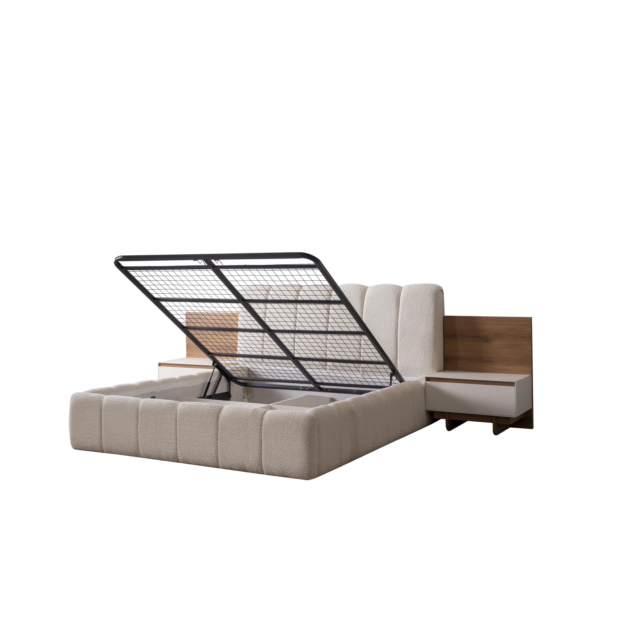• 1 Adet Gardrop,1 Adet Karyola,2 Adet Komodin,1 Adet Şifonyerden Oluşmaktadır