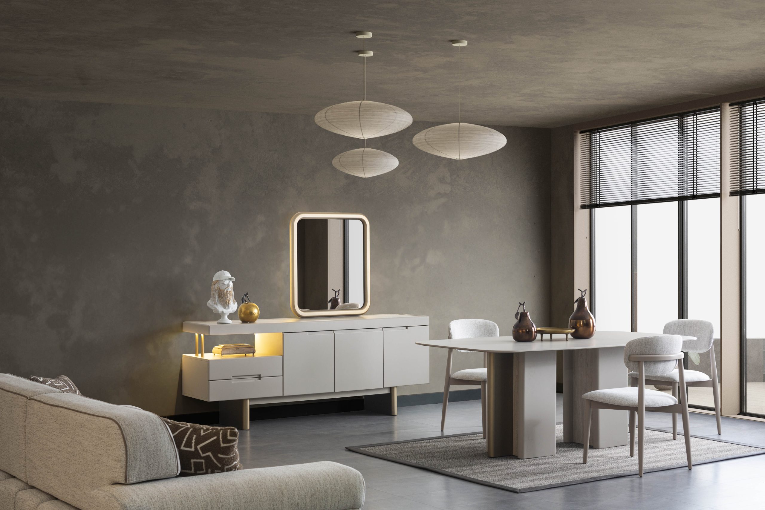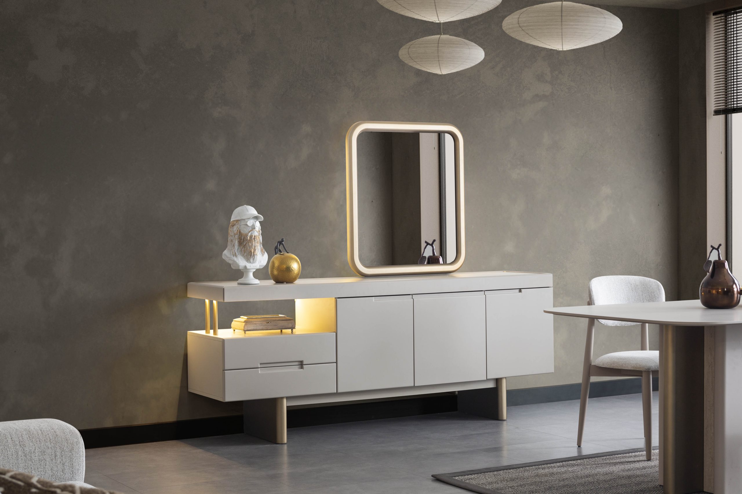 - 1 Adet Konsol+Ayna,1 Adet Masa,6 Adet Sandalye den Oluşmaktadır