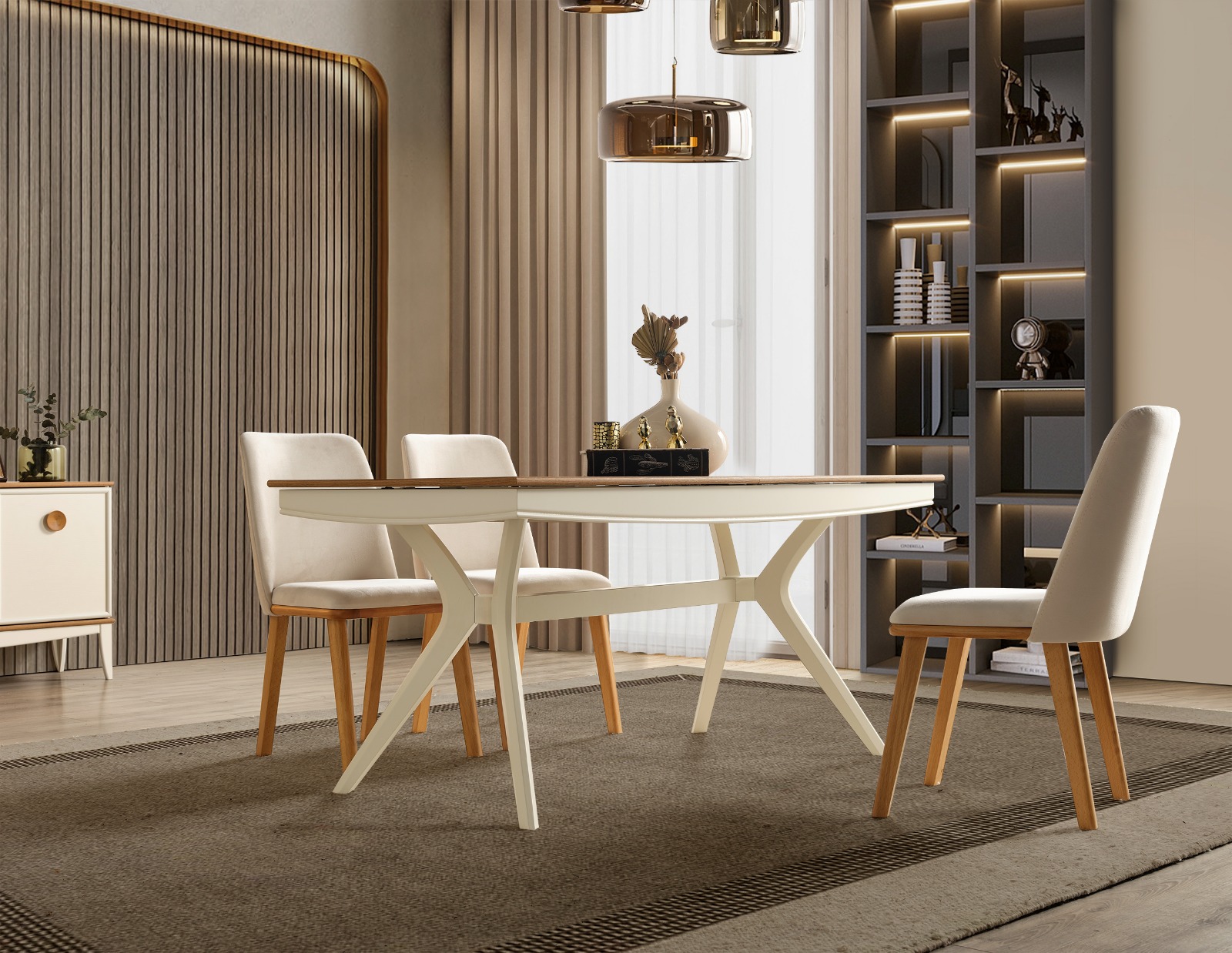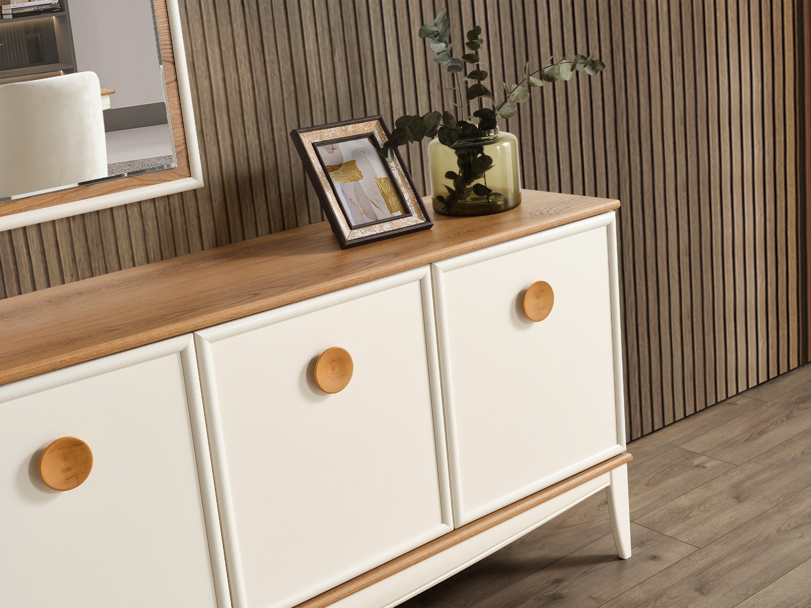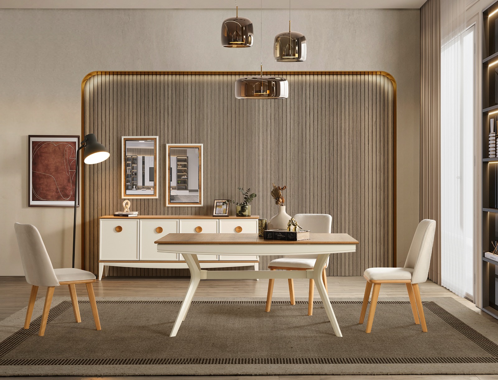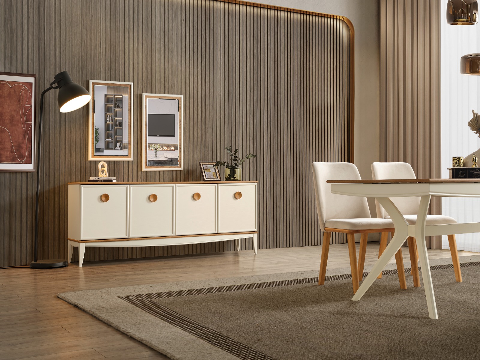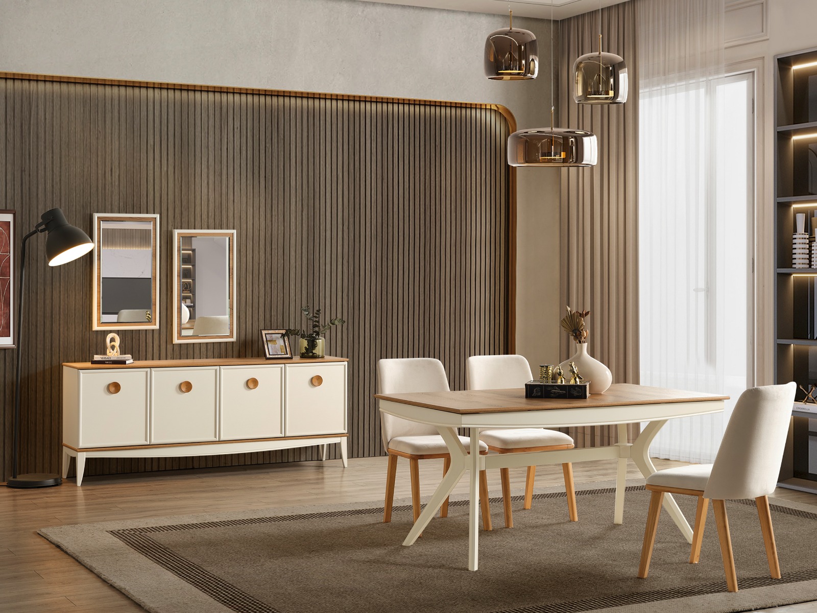 - 1 Adet Konsol+Ayna,1 Adet Masa,6 Adet Sandalye den Oluşmaktadır