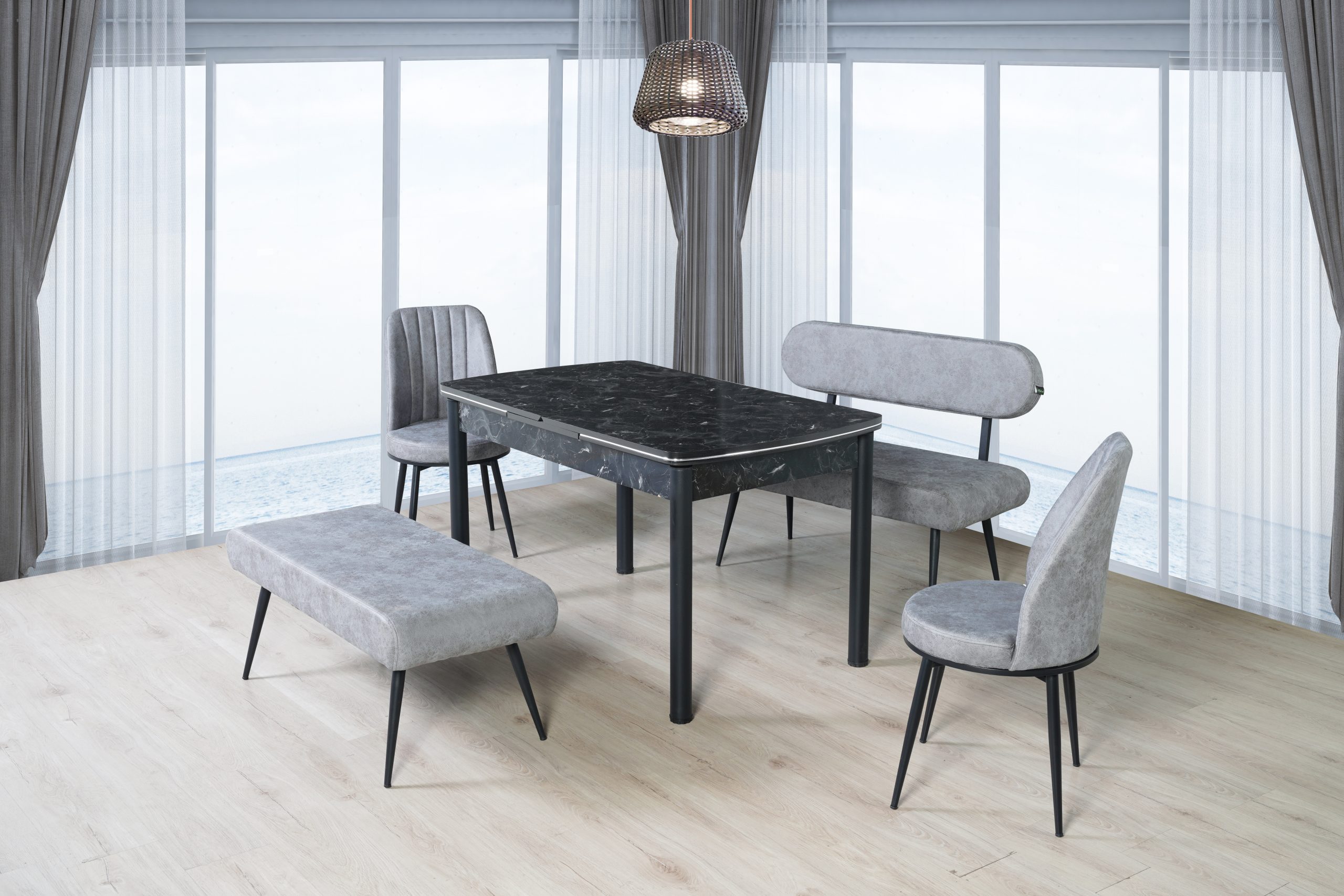 - 1 Adet Masa,2 Adet Sandalye,1Adet puf,1Adet Bank dan Oluşmaktadır