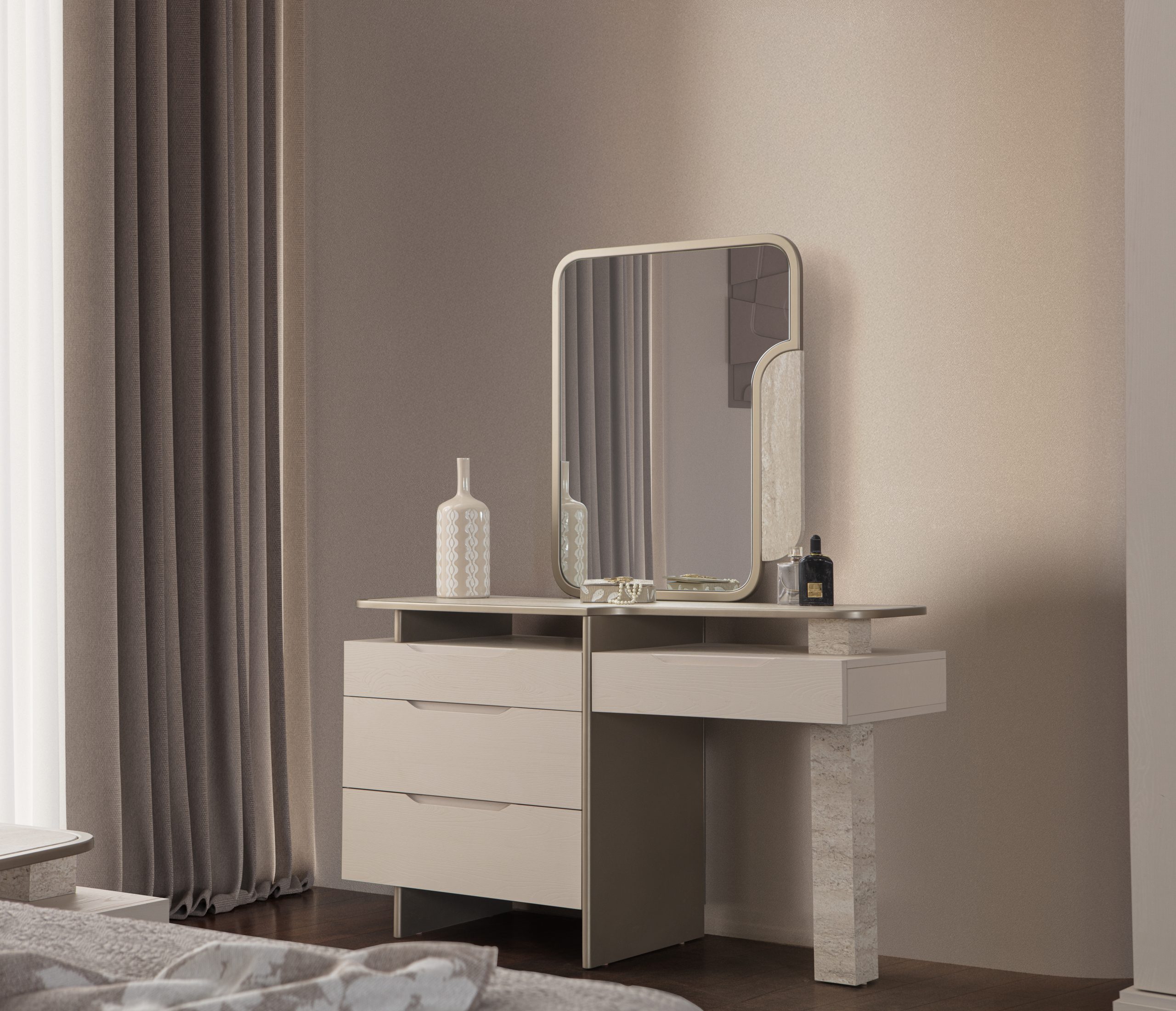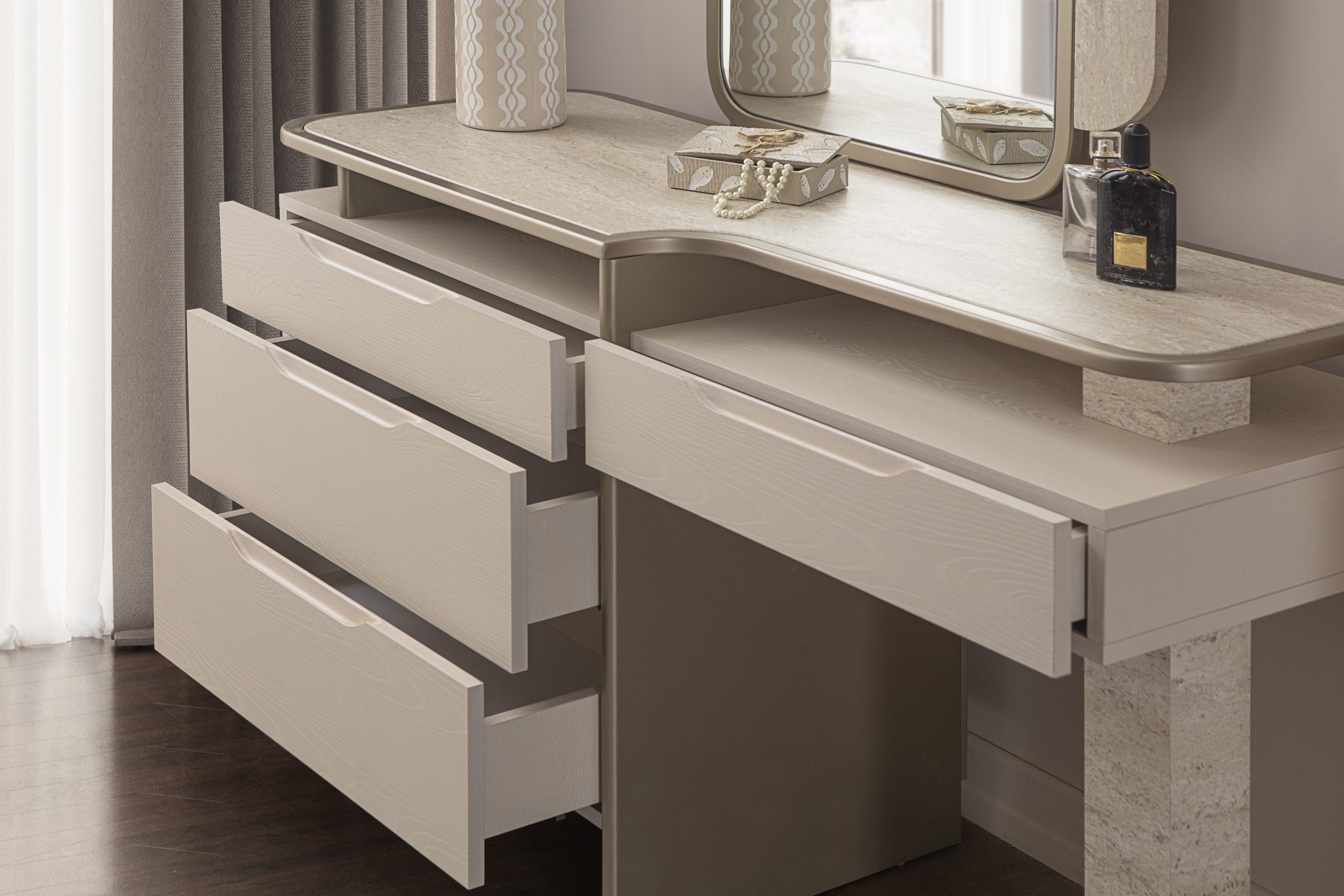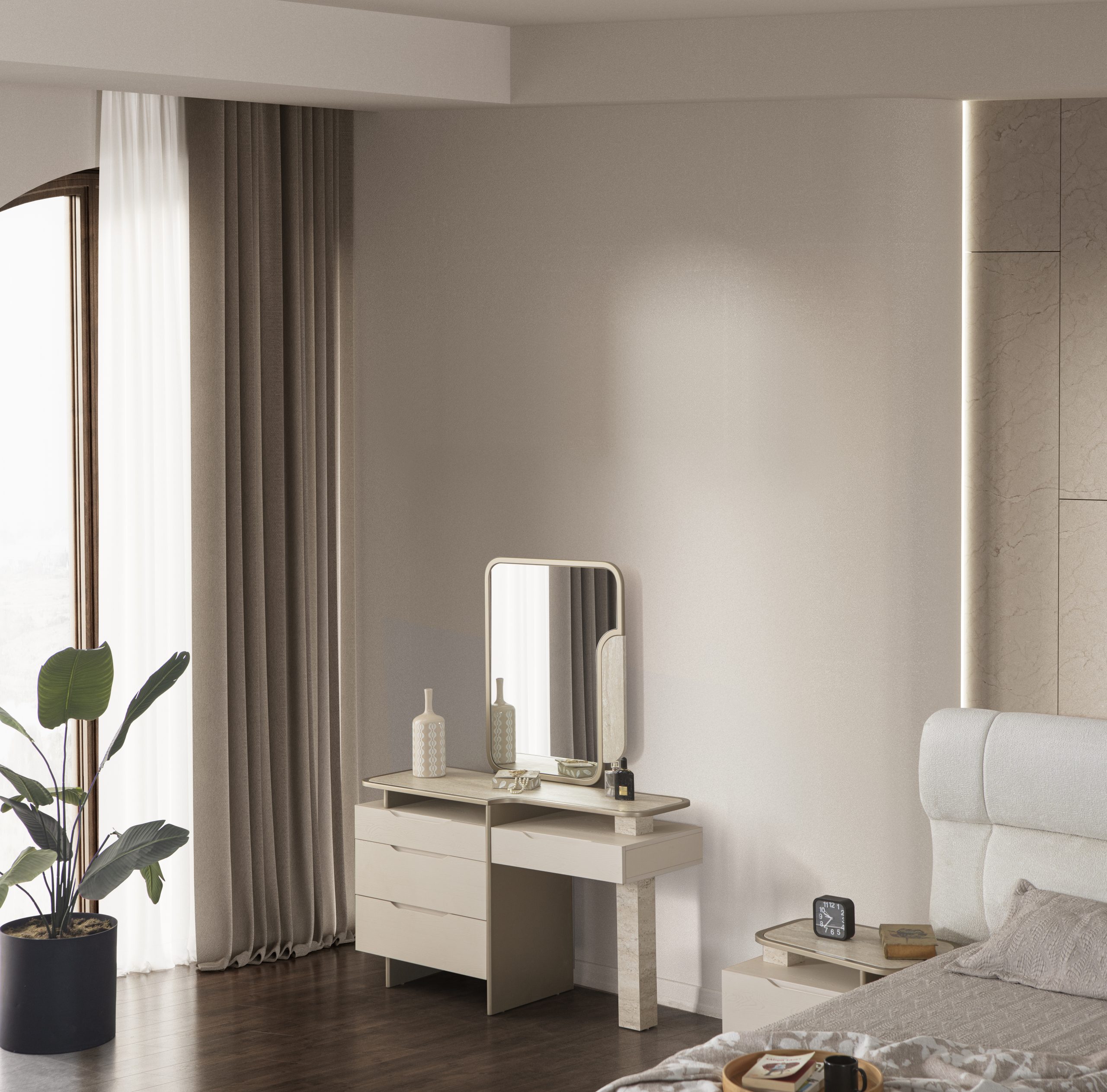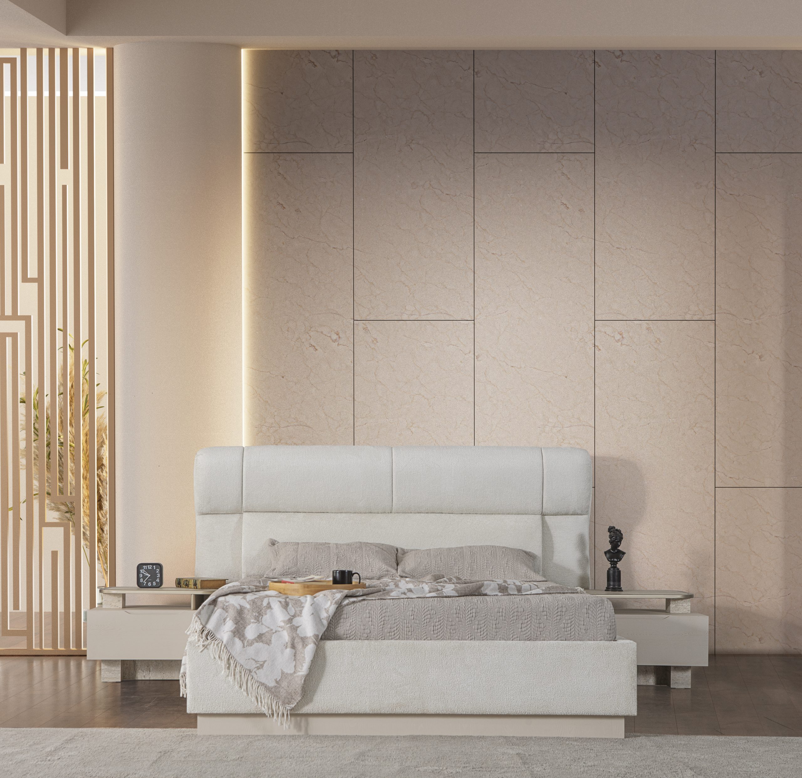 • 1 Adet Gardrop,1 Adet Karyola,2 Adet Komodin,1 Adet Şifonyerden Oluşmaktadır